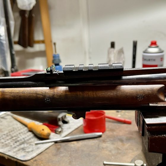 Dans le cadre d’une personnalisation sur mesure, notre atelier a procédé au fraisage précis du canon d’un express superposé afin d’y fixer solidement un rail Picatinny. L’objectif : permettre l’installation d’un point rouge KITE, pour une visée rapide et intuitive à la chasse.