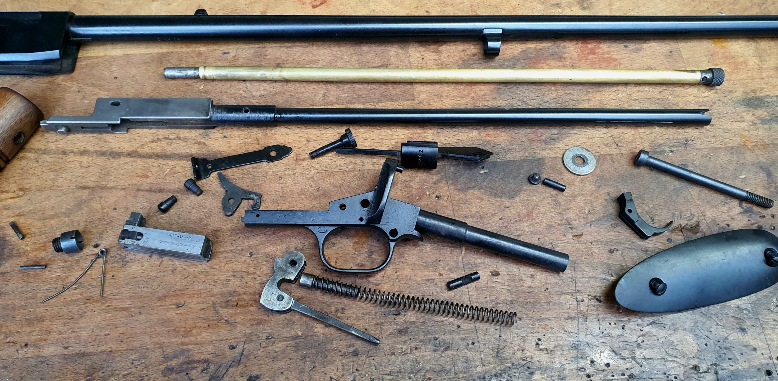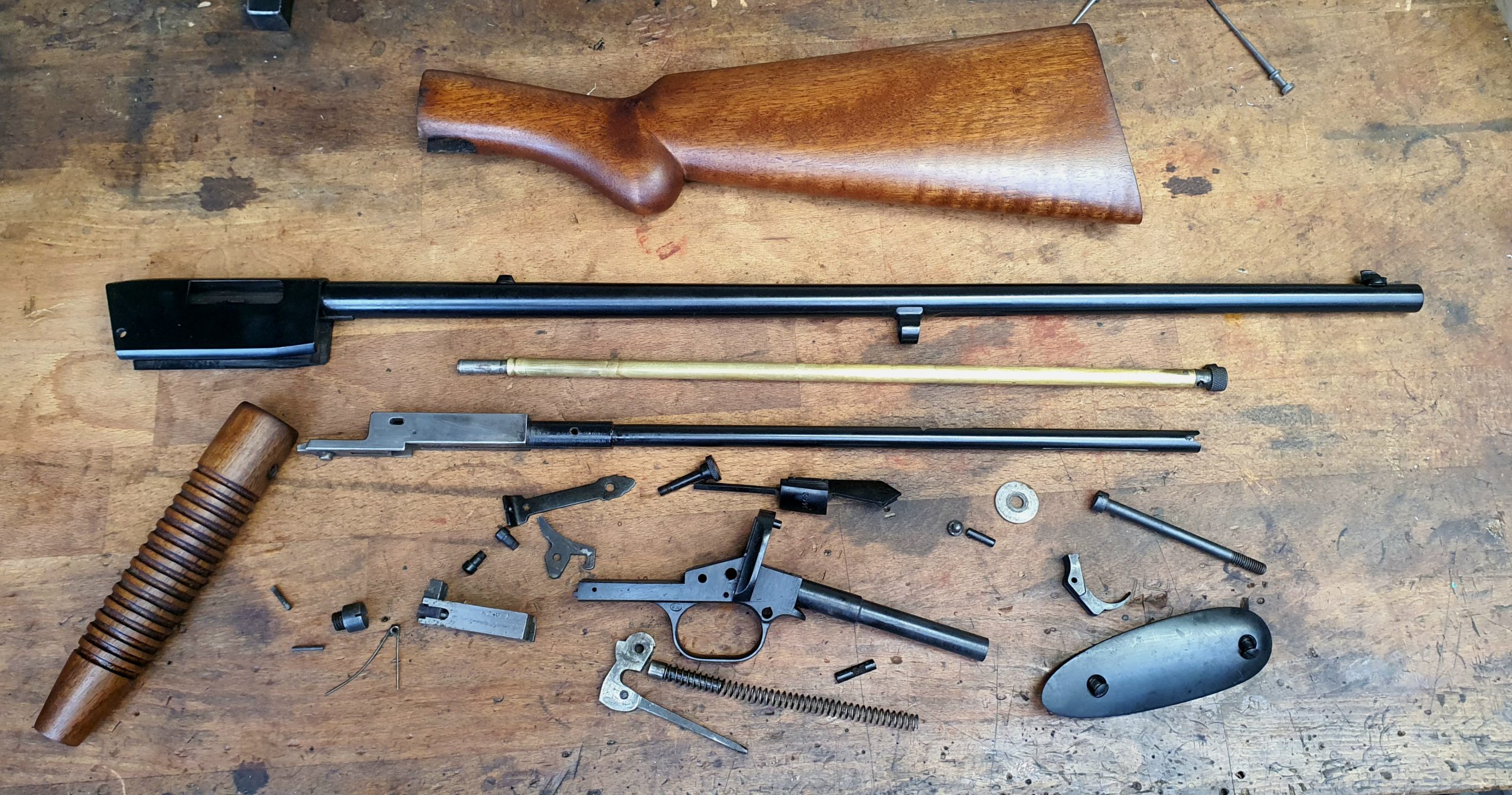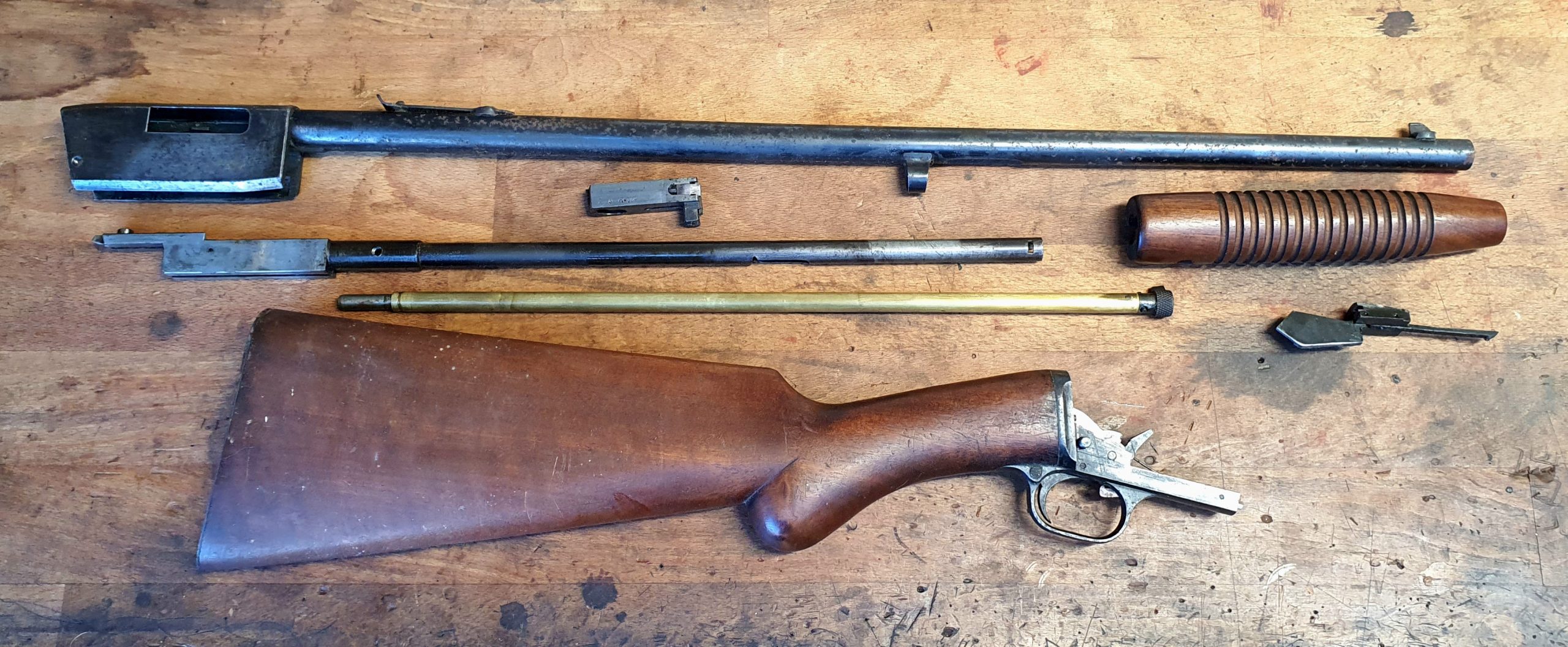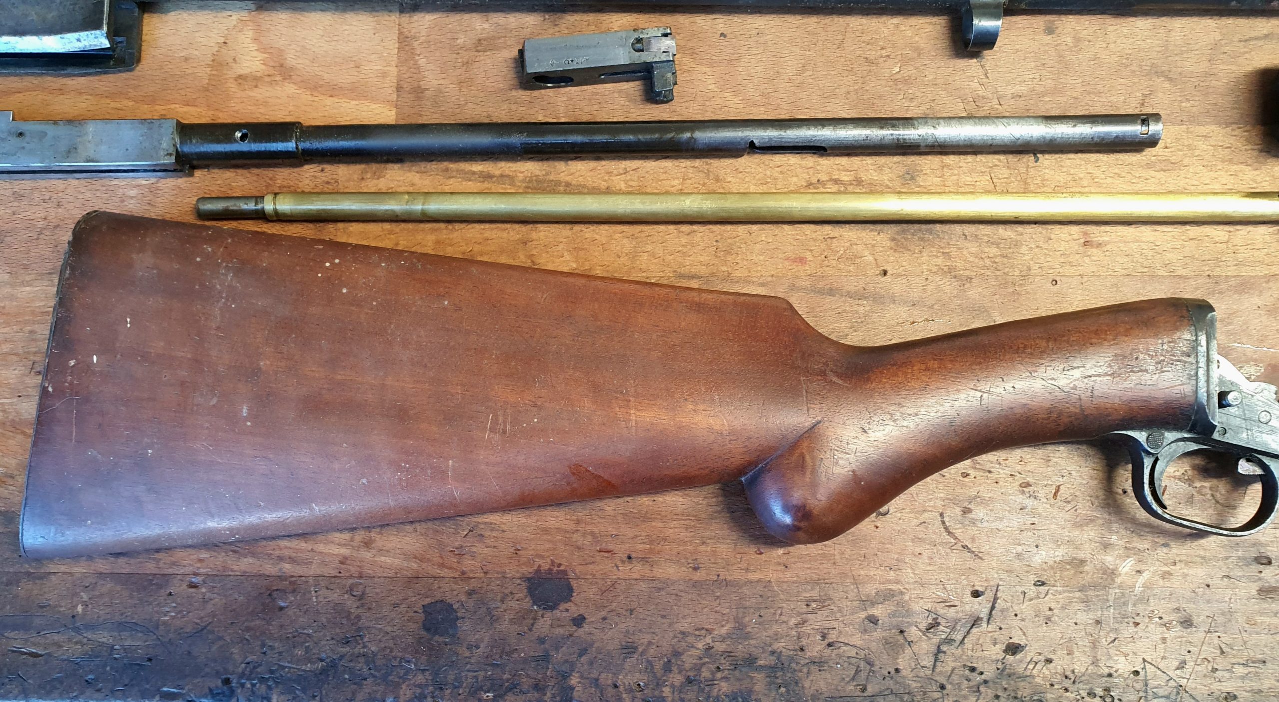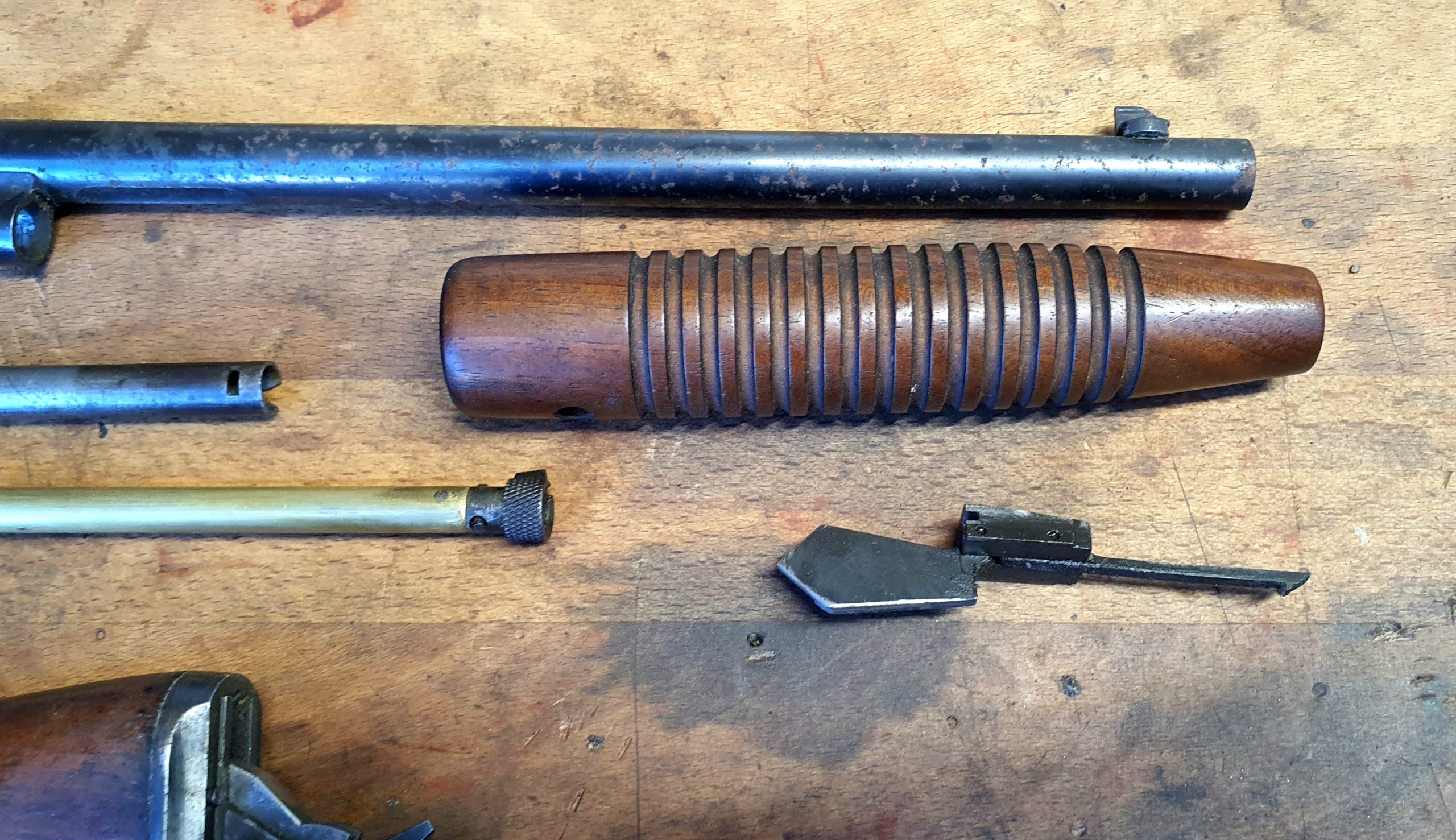 Remise à neuf des bois et du bronzage d’une carabine Browning trombone 22lr Avant : Pendant : Après :
