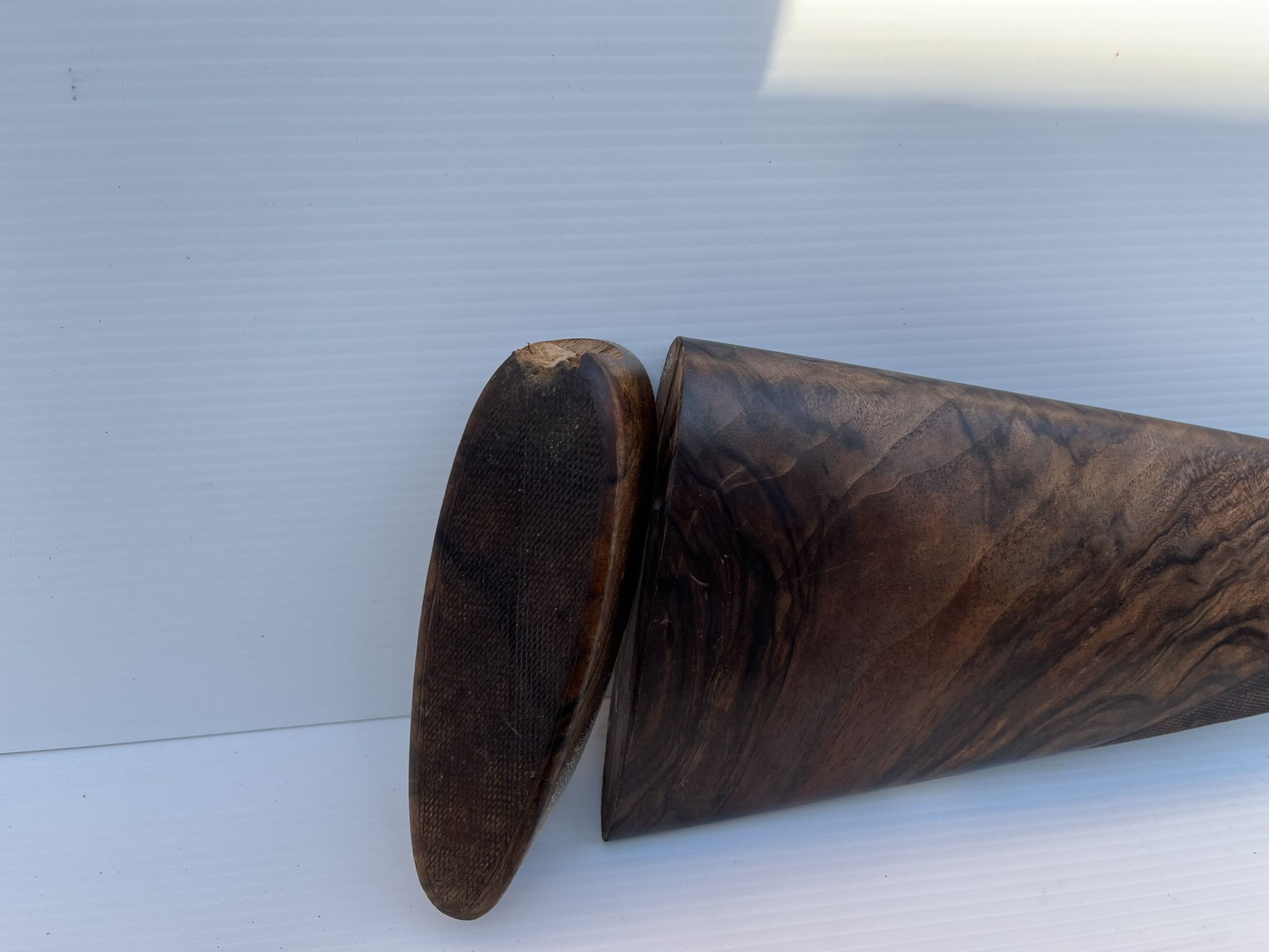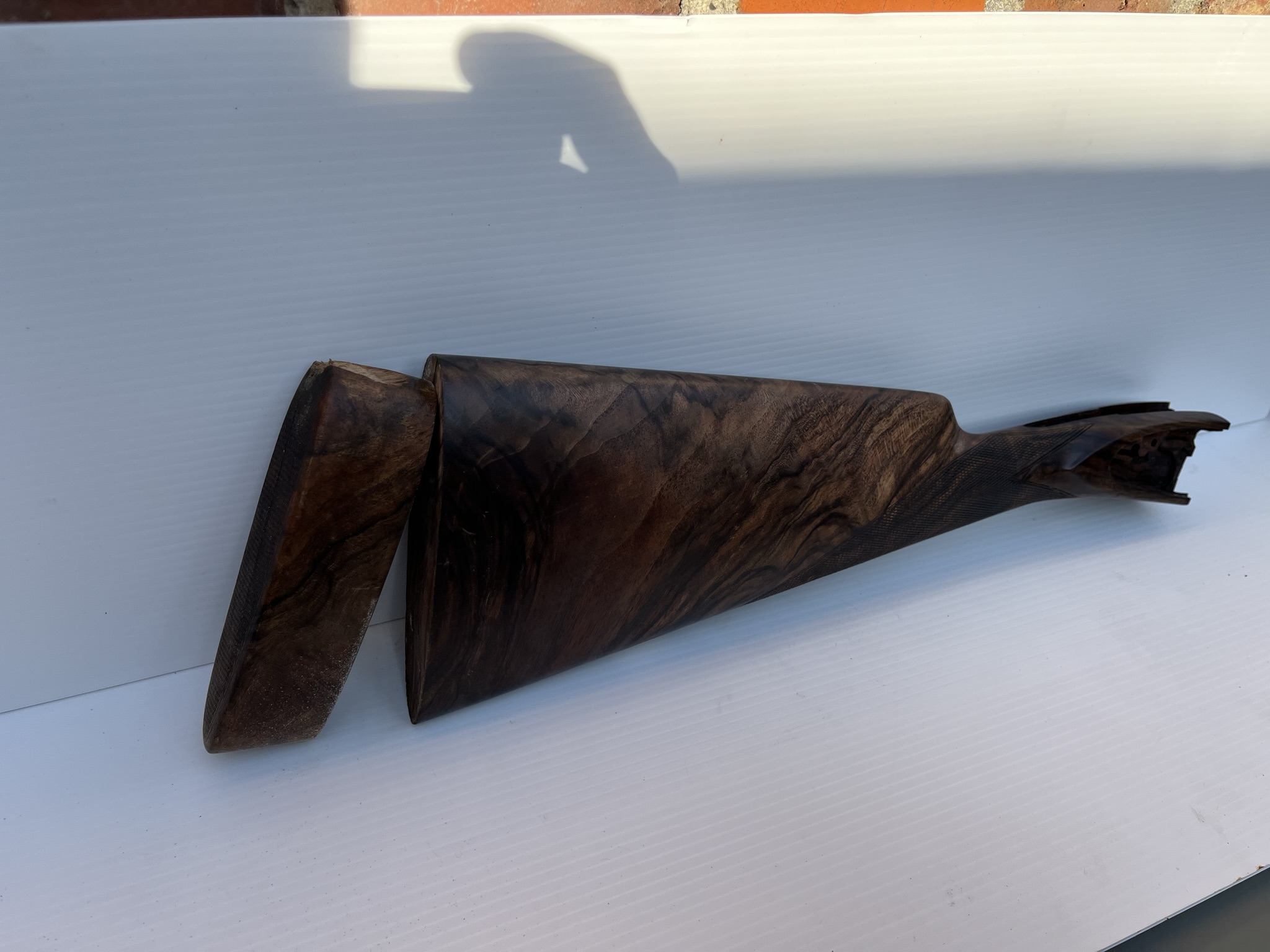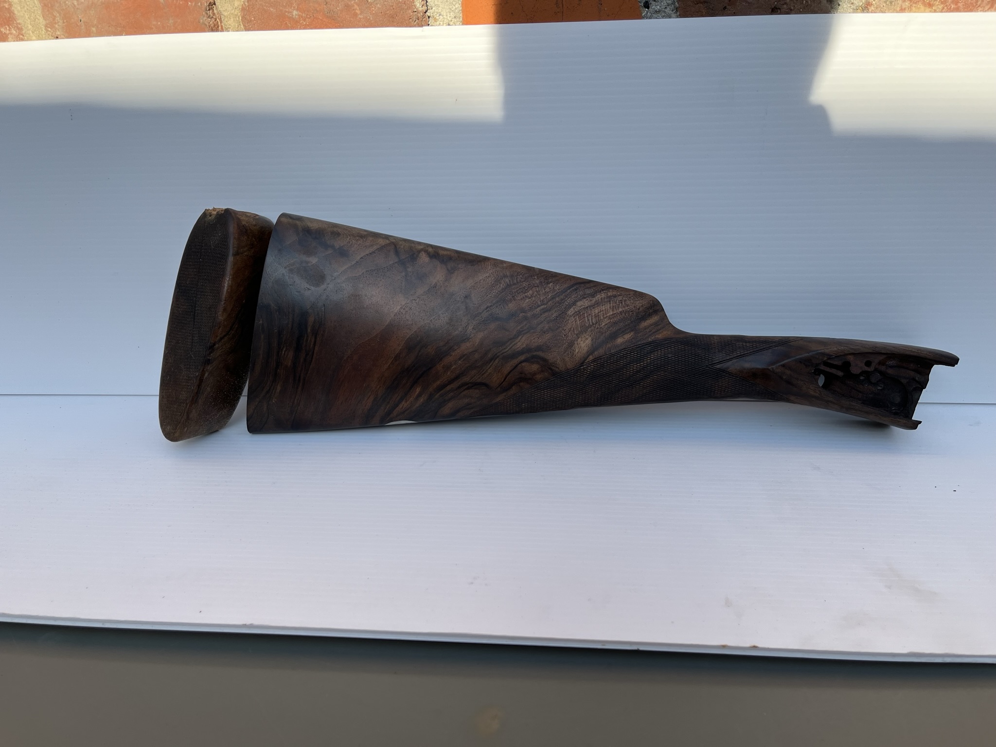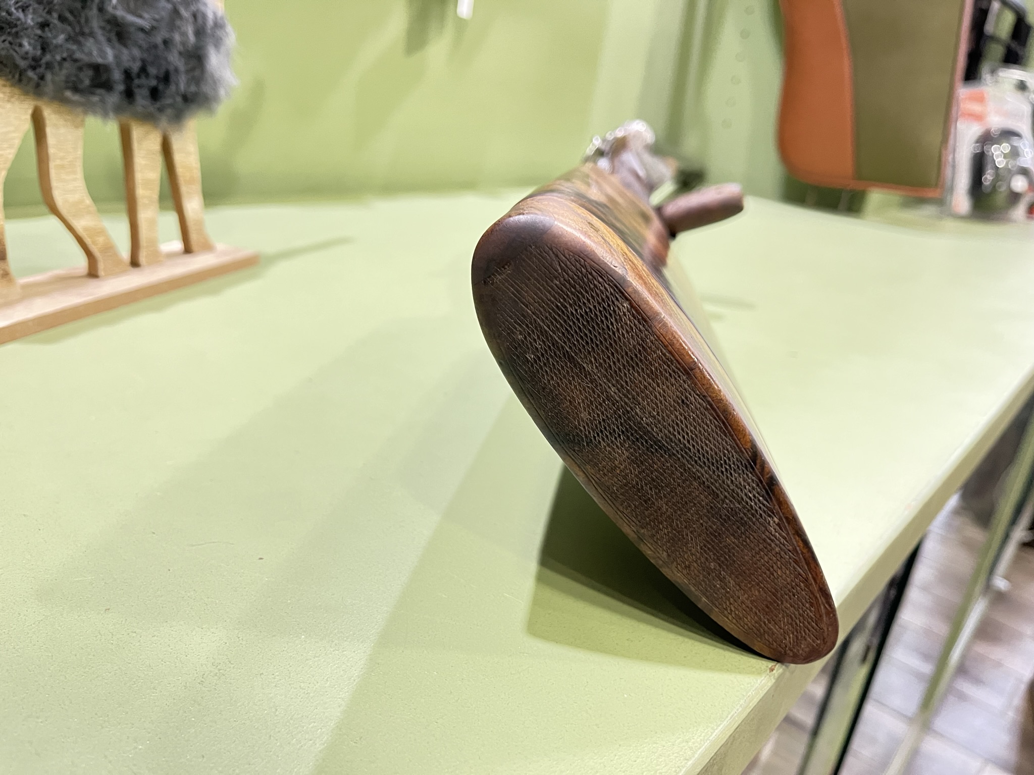 Fusil ayant tombé, le talon bois est parti. Nous avons été obligé de refixer le talon et réparer la parti de bois partie sur le dessus